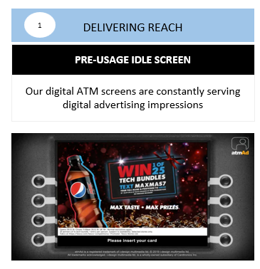 Even when not in use, ATM machines are constantly serving digital advertising impressions and can help brands attract, engage & reinforce messaging with consumers whilst they’re in store, helping influence purchase decisions.